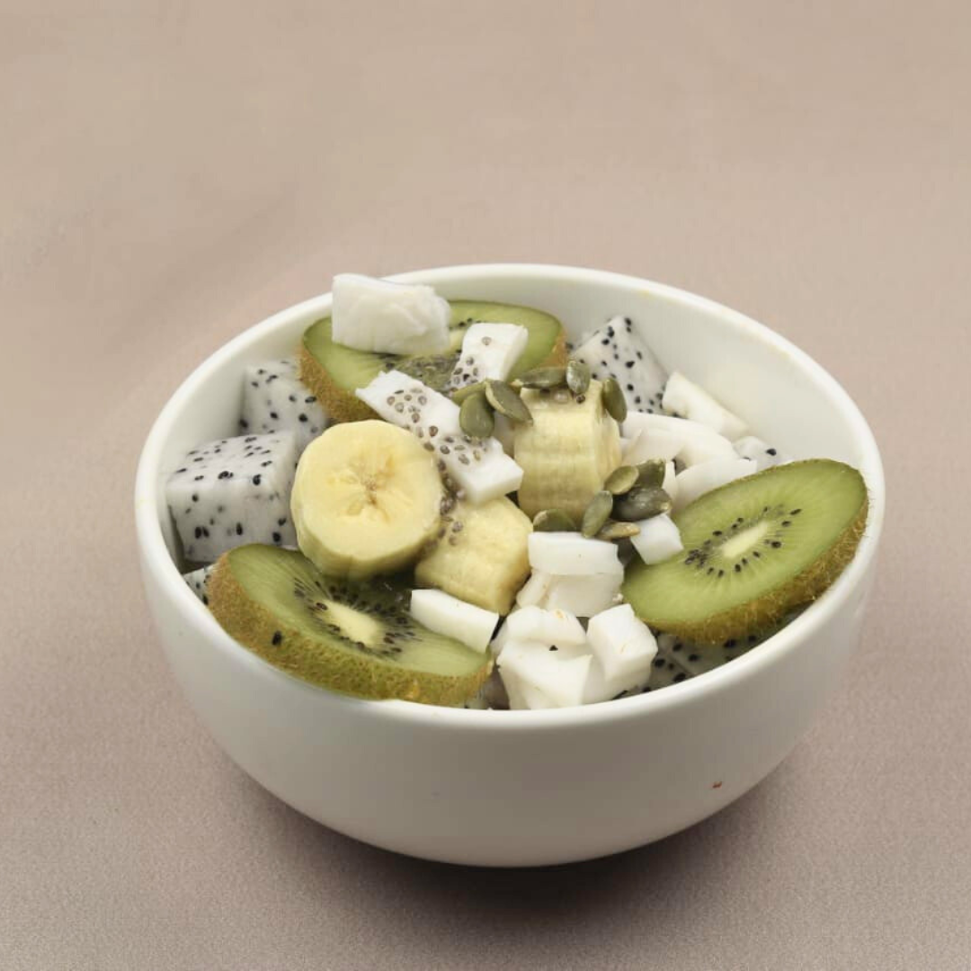 Kiwi, Banana, Dragon Fruit, Lychee; Coconut Jelly or Flakes, Seeds Excluded